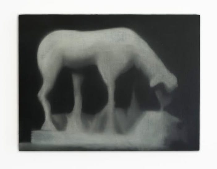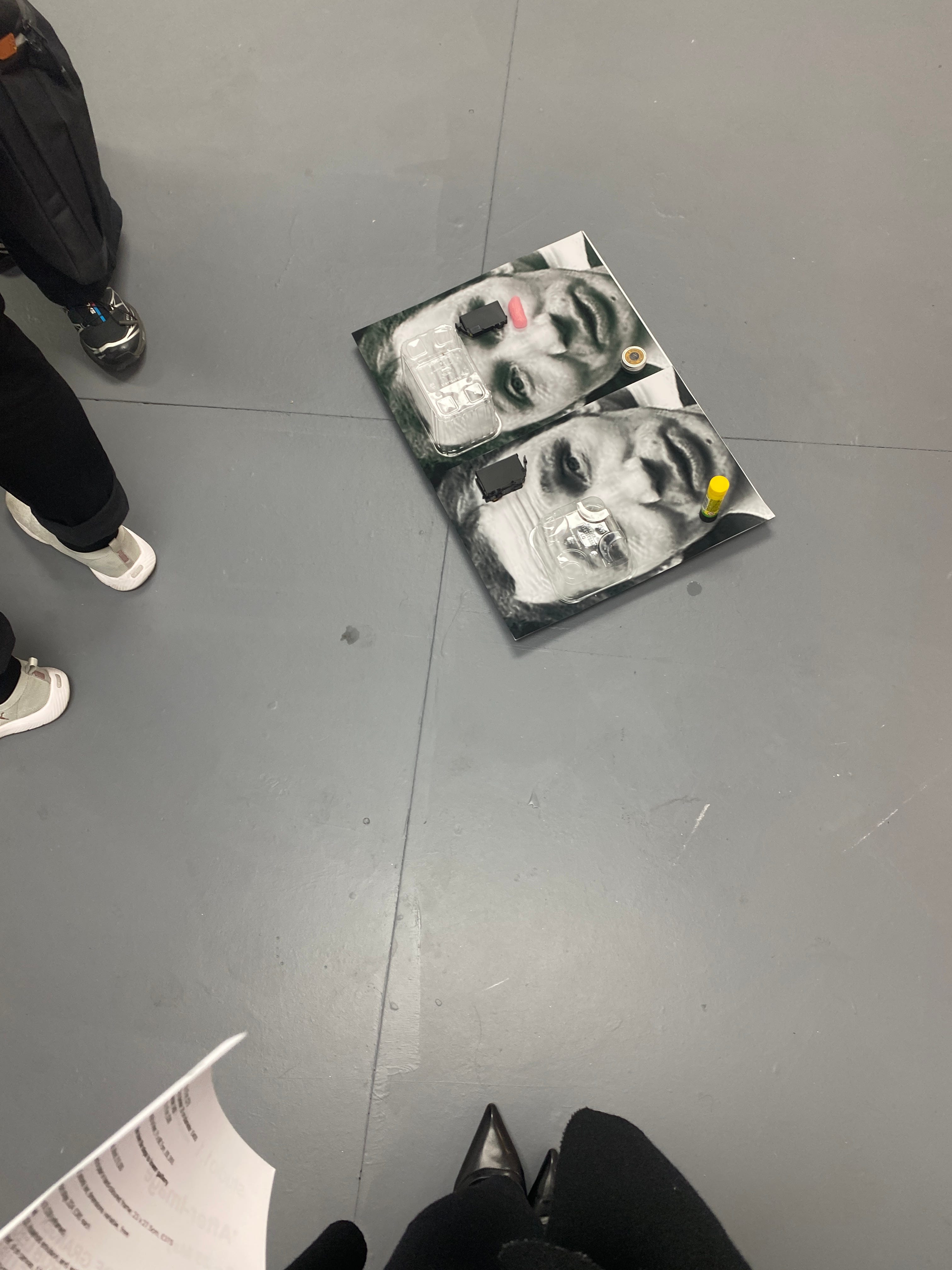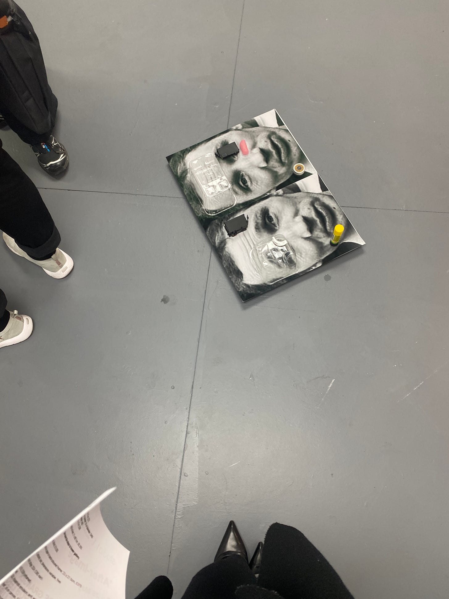 There are still some great pieces. I had (ironically) seen photos of Katherine Lubar’s paintings before and while they didn’t translate as impressively onto canvas, her crowning jewel was a smaller pencil piece tucked away in the corner, a really gorgeous, geometric scene of shadows falling down stairs. Was also a fan of Rob Leech’s floor-based On06052025.ucv, showing ‘household emulsion’ (plastic tupperware, printer cartridges, lipbalm) floating over two black and white close-ups, something between mug and glamor shot (Mr. DeMille, I'm ready…). Liked some of Zoe Granger’s postcards too.